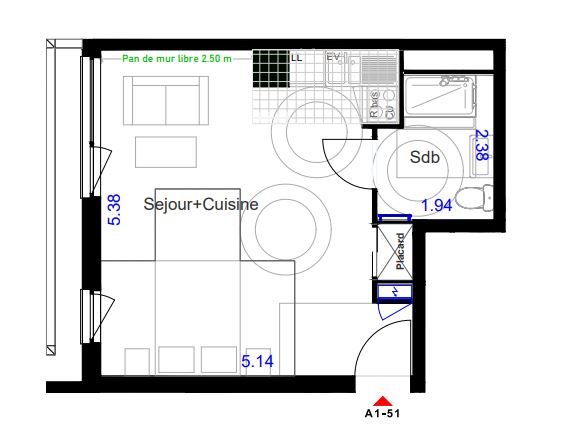 Location Appartement / BEAU T1 neuf 5ème étage MEUBLE